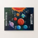 Solar system puzzle for kids who are space fans! Each star or planet is labeled with name. Includes sun, mercury, venus, earth, mars, jupiter, saturn, uranus, and neptune. Cool colorful galaxy background. Add child's name to personalize!