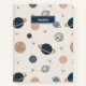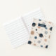 Love space? This notebook makes a great custom touch to your school desk or home office. The pattern has drawings of planets Mercury, Venus, Earth, Mars, Jupiter, Saturn, Uranus, and Neptune, as well as a drawing of the moon. The drawings are sketched in boho style and the colors are in shades of brown and blue. Notebook may be personalized with a name or other text.