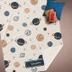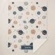 Love space? This sherpa blanket adds a great custom touch to your home bedroom or nursery. The pattern has drawings of planets Mercury, Venus, Earth, Mars, Jupiter, Saturn, Uranus, and Neptune, as well as a drawing of the moon. The drawings are sketched in boho style and the colors are in shades of brown and blue. Blanket may be personalized with a name or other text.