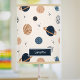 Love space? This desk or table lamp adds a great custom touch to your home bedroom or nursery. The pattern has drawings of planets Mercury, Venus, Earth, Mars, Jupiter, Saturn, Uranus, and Neptune, as well as a drawing of the moon. The drawings are sketched in boho style and the colors are in shades of brown and blue. Lamp shade may be personalized with a name or other text.