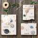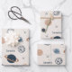 Love space? This wrapping paper sheet set adds a great custom touch to your gift. The pattern has drawings of planets Mercury, Venus, Earth, Mars, Jupiter, Saturn, Uranus, and Neptune, as well as a drawing of the moon. The drawings are sketched in boho style and the colors are in shades of brown and blue. Gift wrap may be personalized with a name or other text.