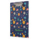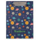 A fun and modern solar system pattern with colorful planet, star and sun illustrations against a dark blue background. This design can be personalized with a baby's name or monogrammed with initials. A great baby shower gift for new or expecting mother.