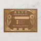 SOLARA III Wedding RSVP Card : Faux Gold Minimalist botanic Wedding RSVP Card on dark kraft paper graphic background. Original artwork by the designer in a deco nouveau style. From the larger SOLARA III Wedding Suite. Prints as shown.