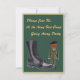 This invitation is decorated on the front with a toy black Soldier and the words "Please Join In At a Boot Camp Going Away Party." The back is customizable with a place to insert text, name, location, and RSVP info.