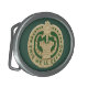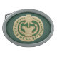 This buckle is decorated with the Drill Sergeant "This We'll Defend" badge on an Army green background background.