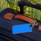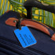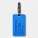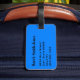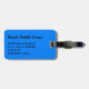 Luggage tag with name and address on a solid azure blue background color. Personalize with your name and address information using the easy templates. Font color, font style, and font size are customizable.