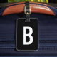 Easily change the monogram initial on the front and name and address on the back of the black luggage tag.