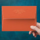 Modern colorful envelope for your wedding invitations and stationary in trendy bright orange. This shade of orange is called Verona Sunset. Details in faux gold, a silhuette of a delicate flower inside whn you open the envelope. Modern typography in contemporary minimalistic style on the outside.