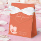 Modern favor box for your wedding in trendy bright orange. This shade of orange is called Verona Sunset. Details in faux gold, a silhuette of a delicate flower. Modern typography in contemporary style.