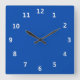 Pretty kitchen wall clock of a deep blue known as Cobalt blue. Twelve white numbers on a plain blue background. Perfect addition for a kitchen with a blue color scheme
