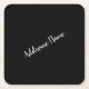Solid Color Modern Basic Black Monogrammed Square Paper Coaster