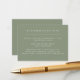 Solid sage green color, wedding accommodations cards. Card template provides multiple template text lines in white for your custom information. Designed to coordinate with our Botanical Foliage Olive Green Wedding Collection.