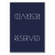 Plain and simple, midnight blue, tented reserved seating card. Thin, printed white "reserved" word will appear on both sides of this card once it's folded (after purchase). Or, you may remove one of the words for text to show on one side only. Neutral theme for any type of gathering, elegant or casual.