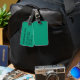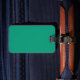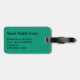 Luggage tag with name and address on a solid emerald green background color. Personalize with your name and address information using the easy templates. Font color, font style, and font size are customizable.