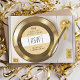 Plain white envelopes are included with paper invitations and will come to fit the invitation size you select. If you don’t need the envelopes, you may choose to not receive them by selecting the dropdown below "Envelopes" and choosing "None." If you’d like to have a design on your envelopes, you can browse all of these available envelopes to find the design that complements your Solid Gold Black Vinyl Record 50th Birthday Party Invitation.