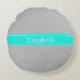 Solid Gray, Bright Aqua Ribbon Name Monogram Round Pillow