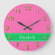 Solid Hot Pink #2 Emerald Green Rbn Name Monogram Large Clock