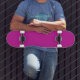 Skateboard with a solid Hot Pink background ready for you to use as is or to customize with your own images or text.