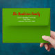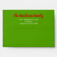A solid, bright, jolly green is featured on this colorful holiday envelope, with customizable back flap text and a solid holly red interior lining