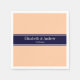 Solid Peach, Navy Blue Ribbon Name Monogram Paper Napkins