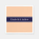 Solid Peach, Navy Blue Ribbon Name Monogram Paper Napkins