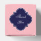 Solid Pink, Navy Blue Ribbon Name Monogram Favor Boxes