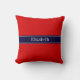 Solid Red, Navy Blue Ribbon Name Monogram Throw Pillow