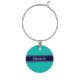 Solid Teal, Navy Blue Ribbon Name Monogram Wine Glass Charm