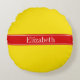 Solid Yellow, Red Ribbon Name Monogram Round Pillow