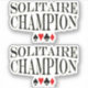 "Solitaire Champion" black text with black and red card suits - spade, heart, club and diamond