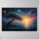 Solitary Tree on Ocean at Sunset 🌅 Starry Fantasy Poster