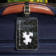 The front side of this luggage tag is adorned with a close-up photograph of the single missing piece in a black segment of a jigsaw puzzle. Fill in the template fields especially with your information on the back side or click "customize to select a typeface style, size, and color you prefer.