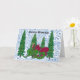 Majestic pine trees and a regal red and green dragon stand against a snowy background. Personalize with your own Yuletide greeting.
