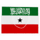This design features the flag of Somaliland (officially the Republic of Somaliland), which is a self-declared state, internationally considered to be part of Somalia. The government of the de facto state of Somaliland regards itself as the successor state to the former British Somaliland protectorate, which, in the form of the briefly independent State of Somaliland, united as scheduled on 1 July 1960 with the Trust Territory of Somaliland (the former Italian Somaliland) to form the Somali Republic. Somaliland lies in northwestern Somalia, on the southern coast of the Gulf of Aden. It is bordered by the remainder of Somalia (per international recognition) to the east, Djibouti to the northwest, and Ethiopia to the south and west. The capital and the largest city of Somaliland is Hargeisa.