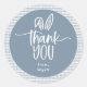 Cute dusty blue bunny theme, birthday party thank you favor sticker. White typography with bunny ear accent.