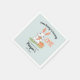 Celebrate your little bunny’s first milestone with this adorably sweet birthday napkin! Set against a soft pastel blue background, this design features a cute bunny sitting on a grass patch with a basket of carrots, bringing warmth and charm to your celebration. The text "Some Bunny is Turning One" is beautifully styled in a mix of script and bold fonts, while the back continues the theme with "Hop on to the Fun" and room for extra details. Easily customize all text to make it perfect for your little one’s big day!