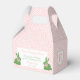 This chic favor box design features a pale pink and white Greek Key print background. On each gable end is a crest with space for a single letter monogram. The front panel contains the event text and message, which you can personalize yourself. On each side is a watercolor "boxwood" rabbit with a cute pink bow.