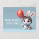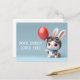 Some Bunny Loves You Cute Rabbit with a Red Balloon Valentines Day Postcard.