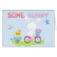 This cute Easter card is especially appropriate for grandparents, uncles, aunts and friends to send to small children. The front has an adorable image of a little white bunny rabbit on a pink bicycle. He is pulling a blue cart with a yellow baby chick. A few butterflies accompany them. The text at the top says "SOME BUNNY" The inside completes the thought, with another butterfly image. The text is customizable. *Thanks to Prettygrafik Design for the images used in this design.