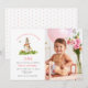 Cute hand painted watercolor rabbit in the garden 1st birthday girl invitation with photo,