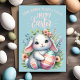 This sweet Easter card features cuteness overload with a darling little white bunny rabbit holding a painted Easter egg while nestled among a bouquet of pastel colored floral greenery. The baby-blue background is the perfect compliment for the vintage-type pink text that declares "Some Bunny Wishes You A Happy Easter". Personalize by customizing the message inside and/or adding your names - or leaving that field bland to add handwritten signatures later.