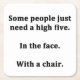 For the sarcasm lover in all of us. Check out this witty “Some People just need a high five. In the face. With a chair.” design on apparel, mugs, mousepads, buttons, and other unique gifts.