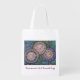 I own a lot of reusable grocery bags, but this one holds its box shape and simply stands up on its own even if there is nothing in it. Its stiffer than your regular reusable bag too, and the material is water resistant. I poured water on the exterior and it didn't penetrate inside to the other side. I'm buying a couple more. Wish I knew how durable these bags were or I would have purchased a few more with my initial order. I also like how it folds and buttons up when not in use, making it easy to put into a handbag or luggage. I haven't used this bag yet, as I purchased it for travel use, like when you're at the airport and need to small sturdy bag to place any airport purchases in, like food, souvenirs etc. I can tell you when you first see this bag, it looks very cheap, but after closer inspection of the material and the seams its a very sturdy reusable bag. I tested it out by putting some really heavy objects inside and I could not observe any stress to the bag at all. Another thing I like about it, is the fact the medium size that this is makes it easy to just carry it in your hand without the bottom of the bag scraping the ground, like most other bags do when you're short. That alone, deserves 5 stars. I just wish there were more colors to choose from! The PDX Airport Carpet printing looks just like the photo, and using this bag during travel might be a conversation piece when/if a native from Oregon happens to see it.