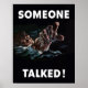 This vintage World War Two poster features a drowning sailor pointing at you from the middle of the ocean. It declares, "Someone Talked". Celebrate American and WW2 History with this digitally restored vintage war poster product from The War Is Hell Store.