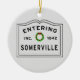 Christmas holidays in New England would not be complete without a festive Entering Somerville ornament. Great gift idea for someone living in the city of Somerville MA, or a Somerville neighborhood like Davis Square, Spring Hill, East Somerville North, Ball Square / Powder House Square, Prospect Hill, Davis Square South, Winter Hill Northeast, or City Center. Give one to your parents, grandparents, newlyweds, welcome to the neighborhood, housewarming you name it!