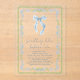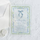 Chic and whimsical clear acrylic bridal shower invitation featuring a vintage grandmillenial inspired green scalloped and blue floral watercolor frame, a blue coquette bow watercolor, "something blue before I do" showcased in a blue calligraphy script, and the name of the bride and shower details in classic serif typography.