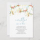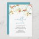 This floral bridal shower invitation features the bride to be's name set with the word "Something Blue before I Do" in a stylish handwritten script typography with event details in a classic charcoal grey serif font on a crisp white background with a top boarder of watercolor white magnolia flowers. The invite card reverses to a complimentary tropical turquoise color. A botanical yet elegant choice for tea party, luncheon or brunch and bubble bridal shower celebrations in Southern climates or Florida. To see the entire suite by Victoria Grigaliunas visit www.zazzle.com/dotellabelle