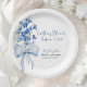 Something Blue Before I Do Bridal Shower Party Paper Plate | Elegant Dusty Blue Floral & Ribbon Bow Design