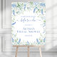 This Something Blue Before I Do 22 x 28 inch Welcome Sign is elegant, classic and feminine. It features blue and white watercolor flowers with wispy greenery. It is a modern take on bridal elegance. It will only take a second to personalize and you'll have an exquisite floral sign for your bridal shower.