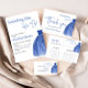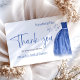 Elegant Something Blue themed Bridal Shower Thank You Card with Blue Dress and Calligraphy Script text quote.